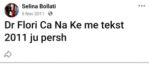 Bëhet fjalë për një status të publikuar në vitin 2011, kur Selina ishte vetëm nëntë vjeçe. Në atë kohë, ajo kishte shkruar një përshëndetje të thjeshtë për Dr. Florin, duke përmendur tekstin “2011 ju persh”. Një postim krejt fëmijëror, por që sot po merr një kuptim krejt tjetër për publikun.
