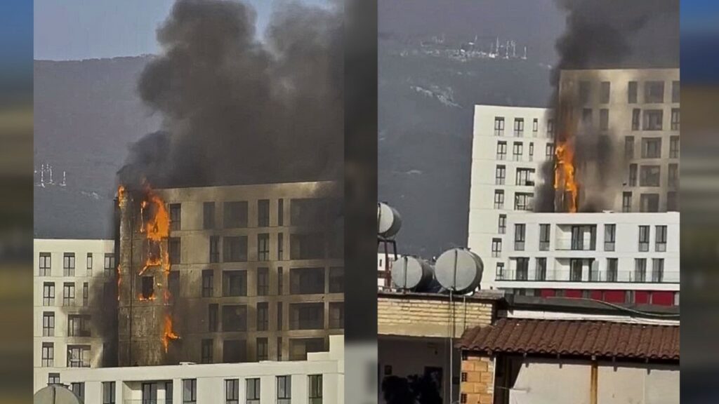 Zjarri është mjaft agresiv, gjë që ka pasuar në rrëzimin e një pjesë të fasadës së pallatit në vetëm pak minuta.